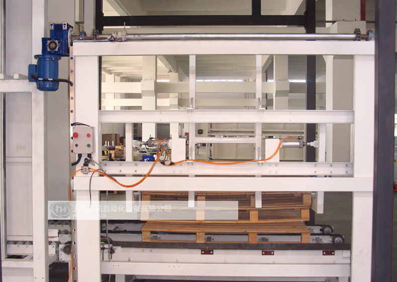 碼垛機(jī)是將已裝入容器的紙箱,按一定排列碼放在托盤(pán)、棧板(木質(zhì)、塑膠)上,進(jìn)行自動(dòng)堆碼,可堆碼多層,然后推出,便于叉車(chē)運(yùn)至倉(cāng)庫(kù)儲(chǔ)存。本設(shè)備采用PLC+觸摸屏控制,實(shí)現(xiàn)智能化操作管理,簡(jiǎn)便、易掌握??纱蟠蟮販p少勞動(dòng)力和降低勞動(dòng)強(qiáng)度。碼垛機(jī)是輸送機(jī)輸送來(lái)的料袋、紙箱或是其它包裝材料按照客戶(hù)工藝要求的工作方式自動(dòng)堆疊成垛,并將成垛的物料進(jìn)行輸送的設(shè)備。