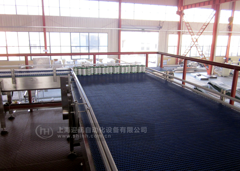 鏈板輸送機(jī)可以滿足飲料貼標(biāo)、灌裝、清洗等設(shè)備的單列輸送的要求,滿足殺菌機(jī)、儲(chǔ)瓶臺(tái)、冷瓶機(jī)的大量供料的要求,可將兩條鏈板輸送機(jī)的頭尾部做成重疊式的混合鏈,使得瓶(罐)體處于動(dòng)態(tài)過(guò)度狀態(tài),使輸送線上不滯留瓶子,可以滿足空瓶及實(shí)瓶的壓力和無(wú)壓力輸送。